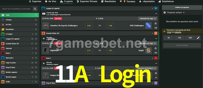 O 11A Login oferece uma grande seleção de opções de apostas em e-sports com probabilidades competitivas